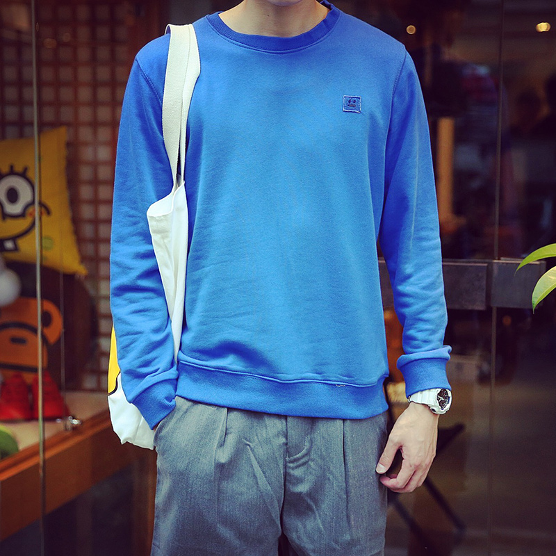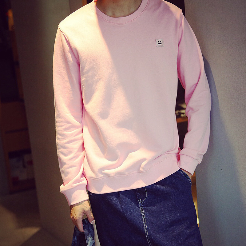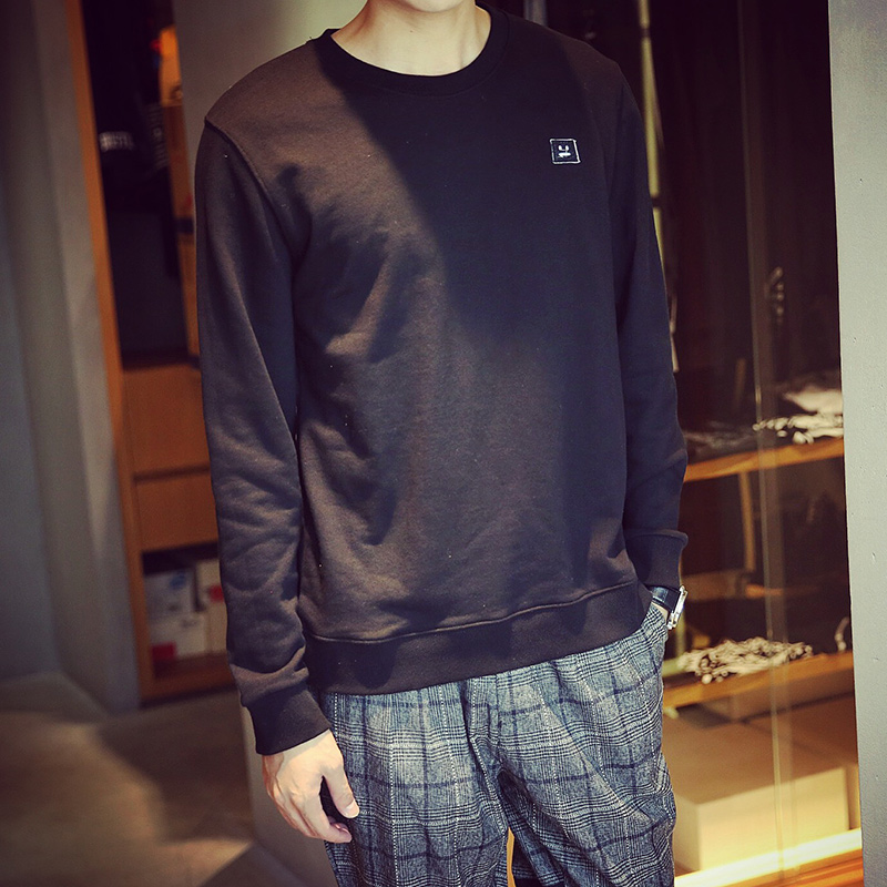/ 金冠原創設計笑臉韓版修身純色男士百搭套頭衛衣潮
