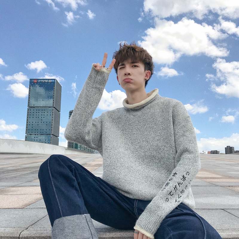 文藝男女店秋季韓版男士毛衣潮流圓領休閑針織衫日系寬松線衣男裝