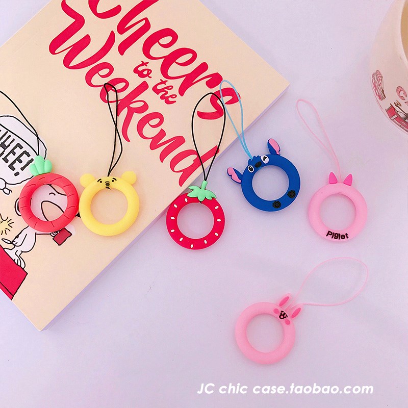 / 卡通硅膠小手繩手機殼掛飾硅膠圓環指環扣鑰匙扣飾品掛繩通用蘋果