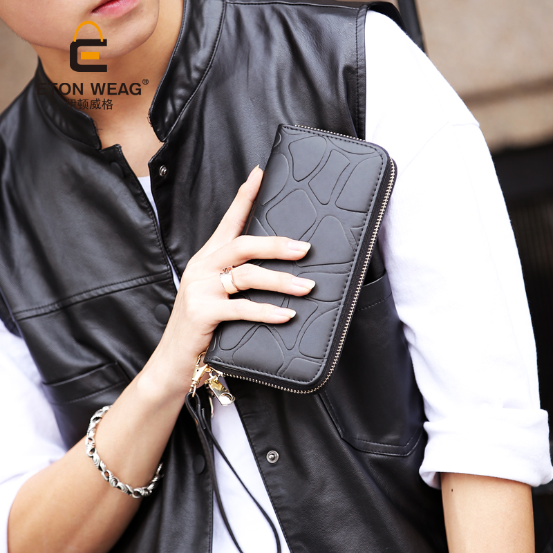原創潮流錢包新款男女士中長款錢包時尚石頭紋拉鏈手抓錢夾卡位