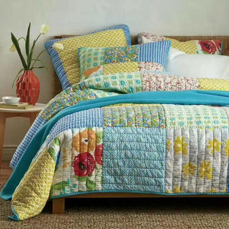 關于她:潔凈的色調,瞬間點亮居室的氣氛,簡潔明快的花色設計,從容配色,抒寫仲夏記憶……此款為出口 富有異國情調,絎縫比一般款式密實,手感舒適,可用作床蓋,夏季薄被等等……