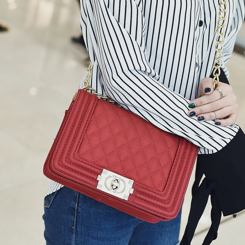 / 鏈條包包女新款潮菱格迷你小方包韓版啞光斜挎包單肩女包小包