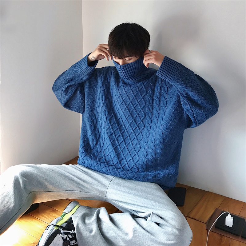 文藝男女店冬季網紅同款線衫外套高領毛衣韓版潮流男士針織衫秋冬