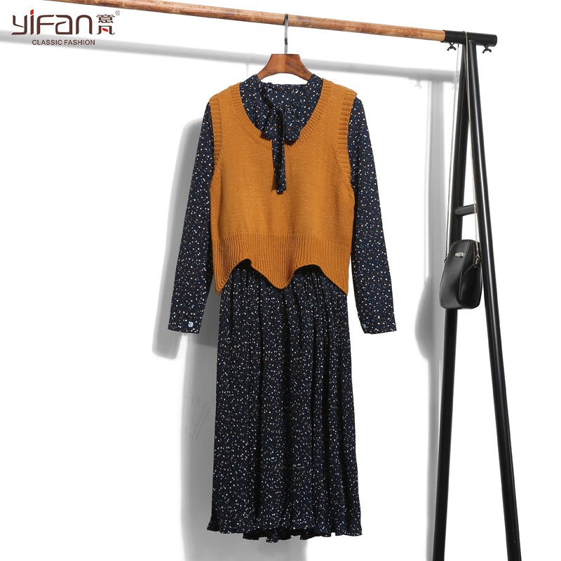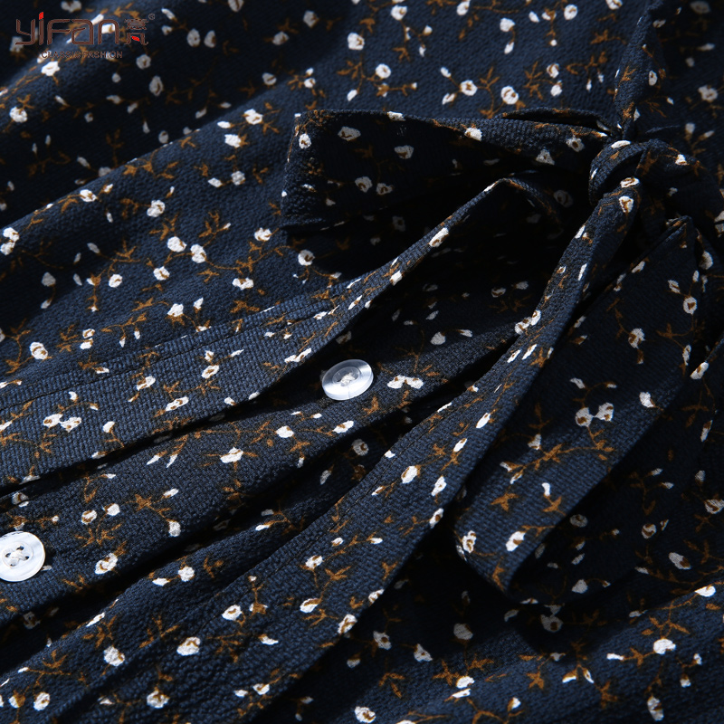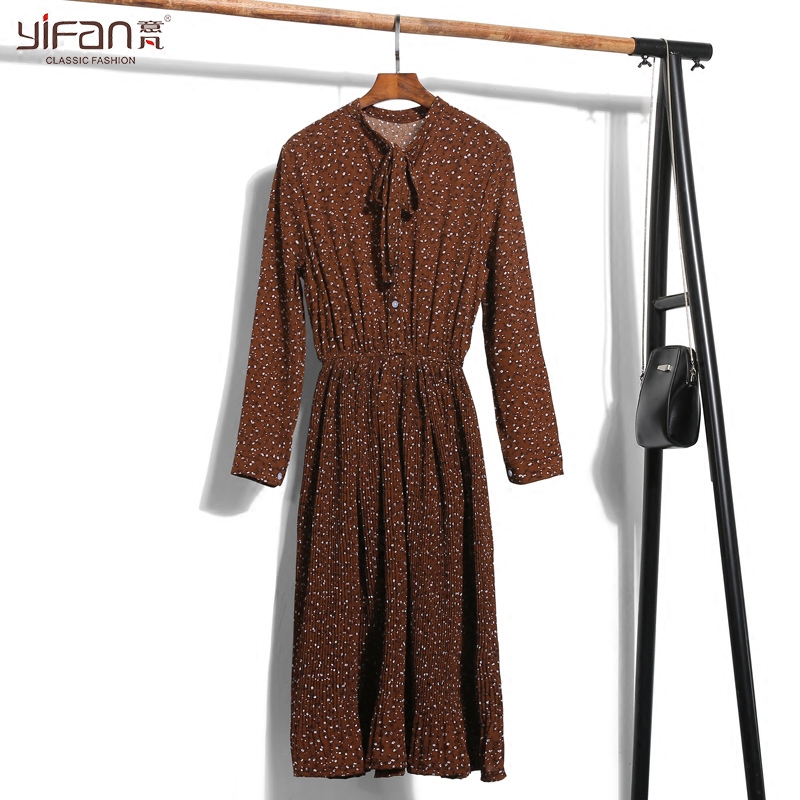 / 初春復古雪紡碎花長袖連衣裙韓版修身顯瘦半開領長款百褶裙女
