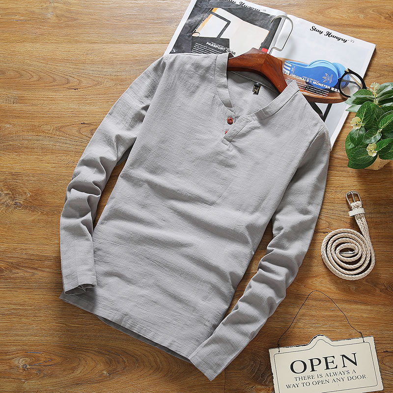 2017新款長袖修身打底衫潮流大碼男裝休閑V領長袖T恤