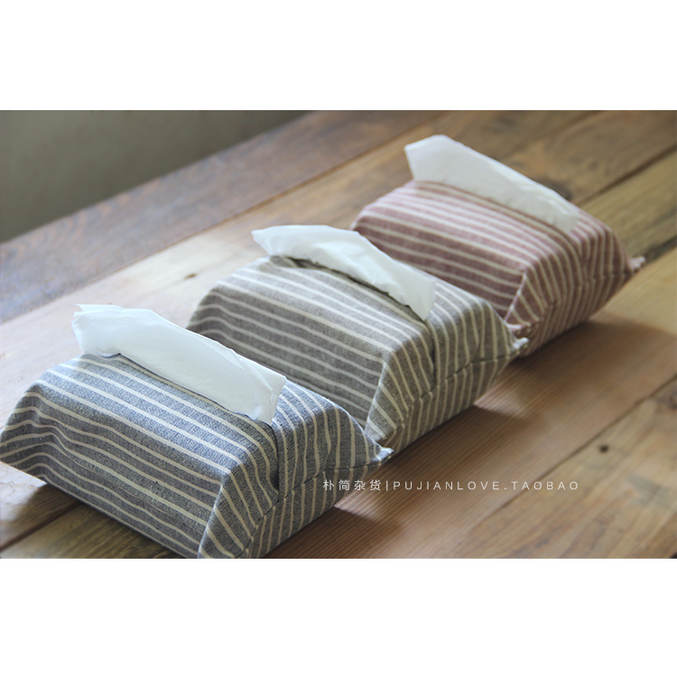 / 樸簡|日式小清新布藝棉麻條紋抽紙巾套 車載紙巾盒袋 家用餐巾盒