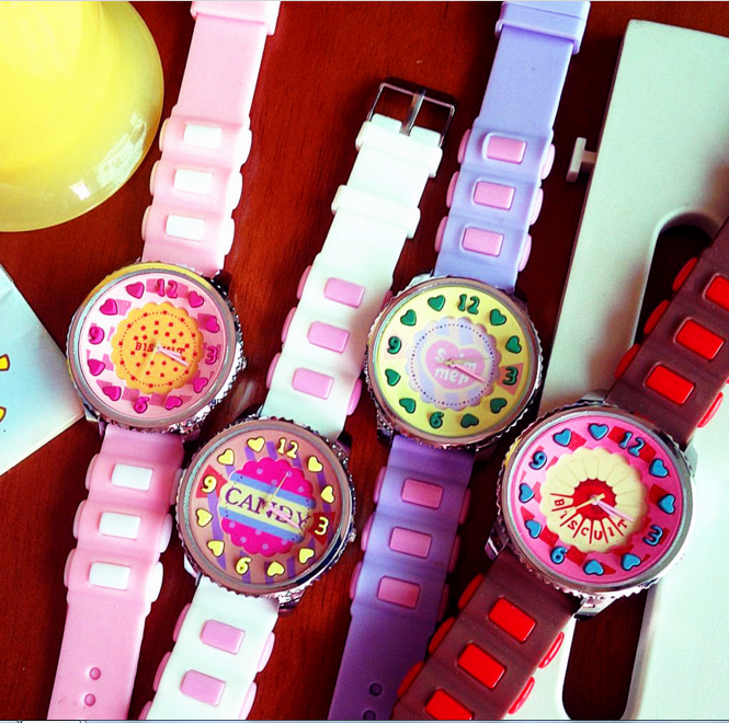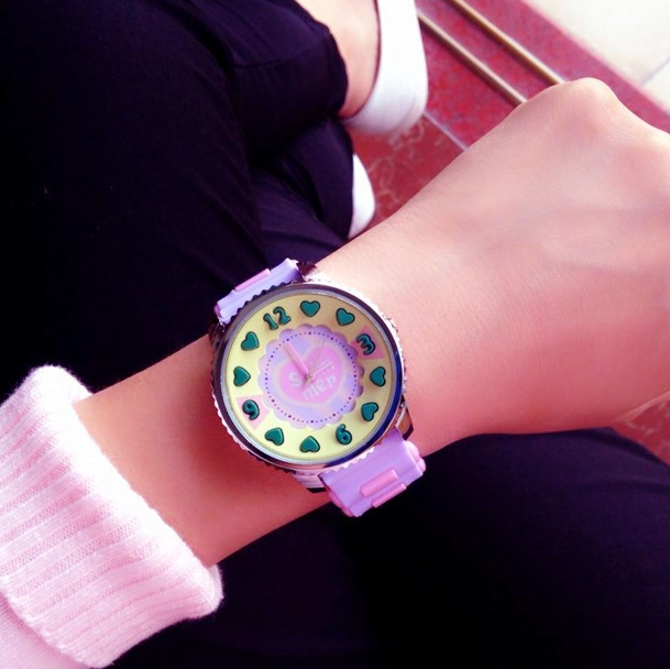 韓國手表女學生日系原宿軟妹可愛糖果色撞色卡通粉萌圓形石英女表
