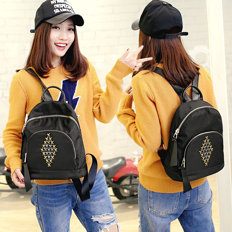 鉚釘雙肩包女韓版時尚百搭牛津帆布個性包包新款女士背包女潮