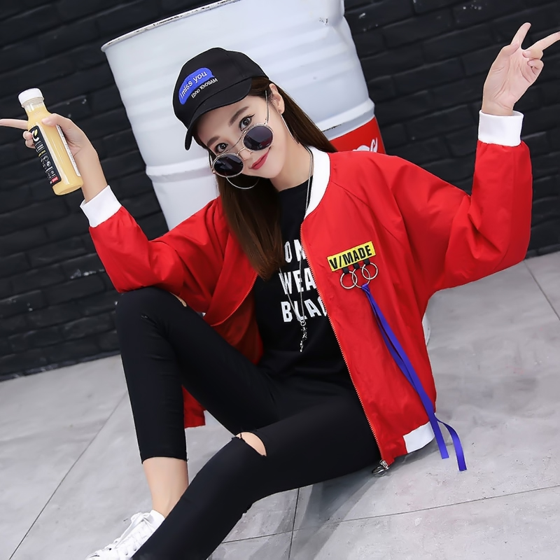 / 韓國ulzzang原宿風拼色織帶情侶BF夾克女棒球服外套寬松夾克學生