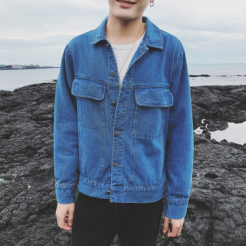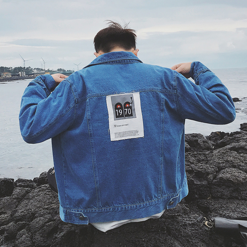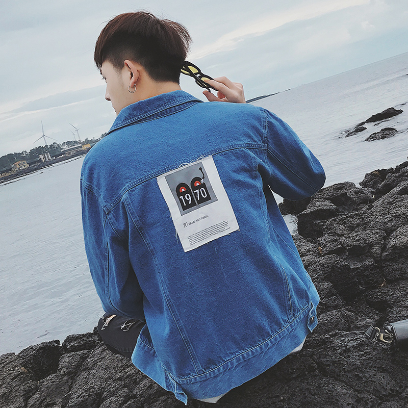 / 男裝卡通企鵝圖案男士春裝牛仔衣短款翻領夾克外套