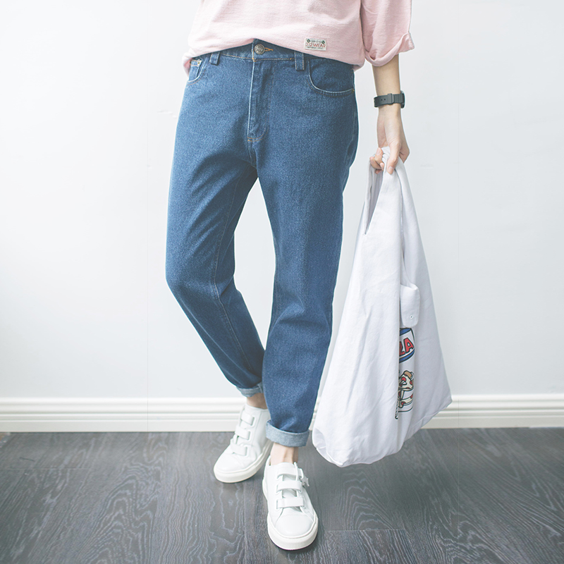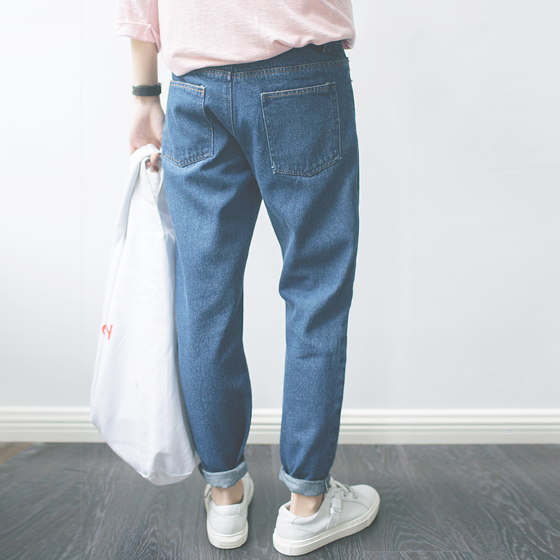 / 男裝原創韓版簡約加絨保暖丹寧水洗男士牛仔褲