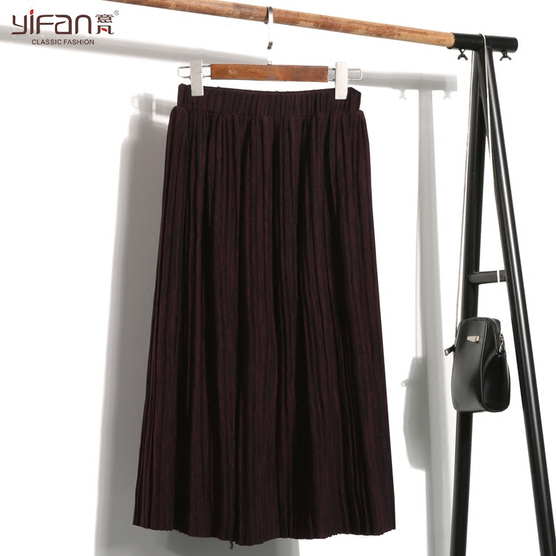 / 秋季新款韓版松緊腰百褶中長裙女復古純色半身裙顯瘦風琴裙潮