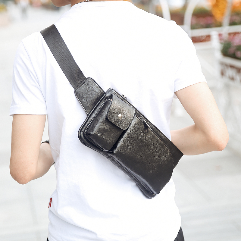 新韓版男士胸包皮質休閑潮流胸包男士腰包胸前包時尚小背包