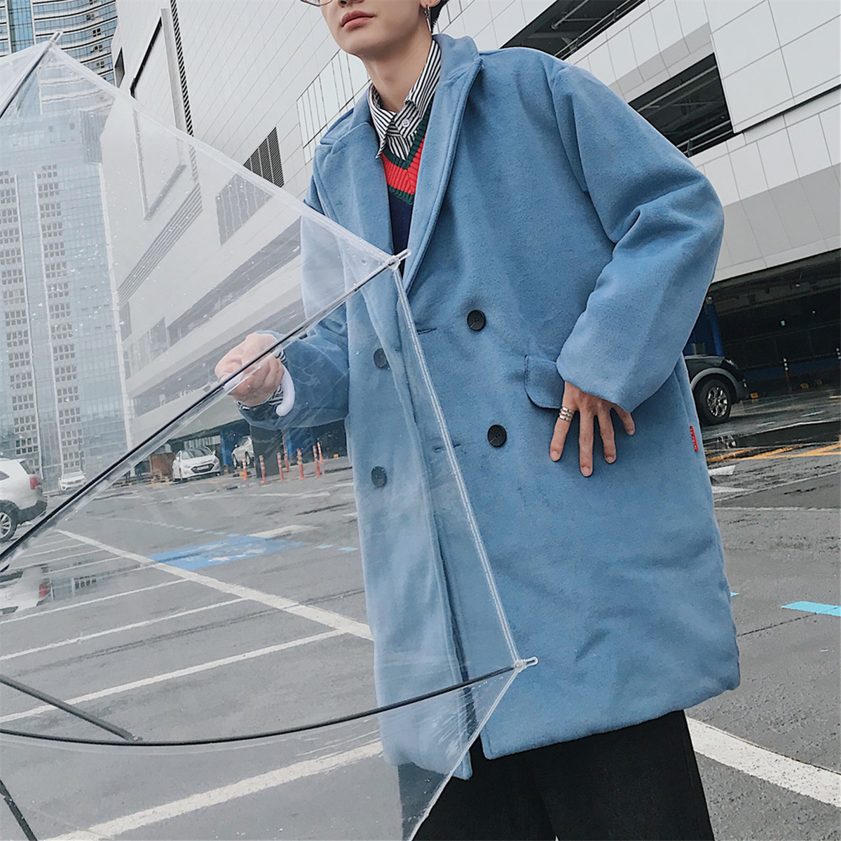 / 文藝男女店男士冬季毛呢大衣韓版潮流中長款情侶外套英倫冬裝風衣