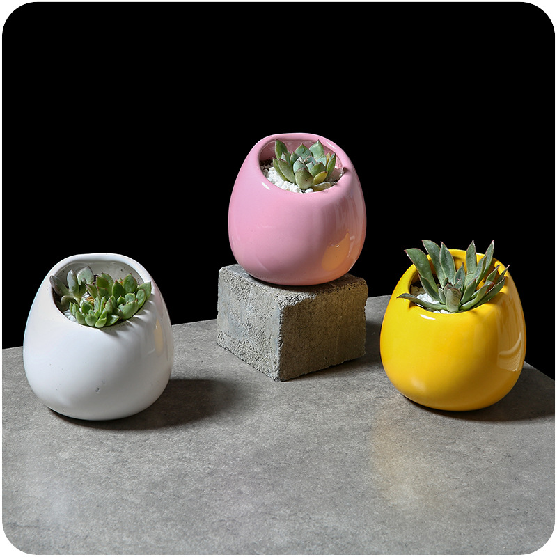 / 時尚多肉圓形白色陶瓷花盆創意簡約可愛垂吊個性花卉植物壁掛花器