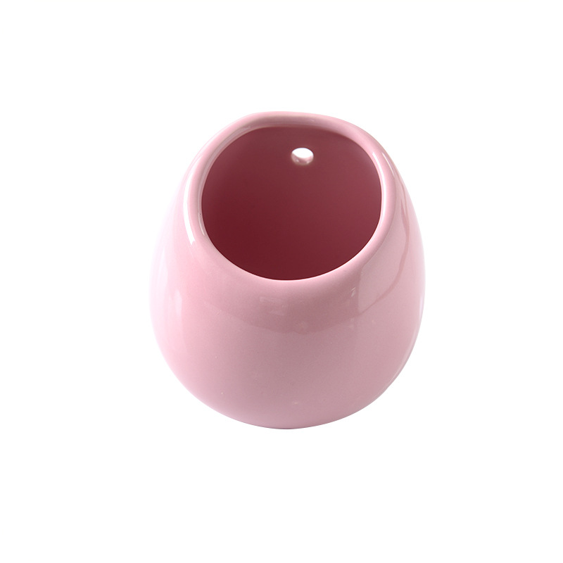 時尚多肉圓形白色陶瓷花盆創意簡約可愛垂吊個性花卉植物壁掛花器
