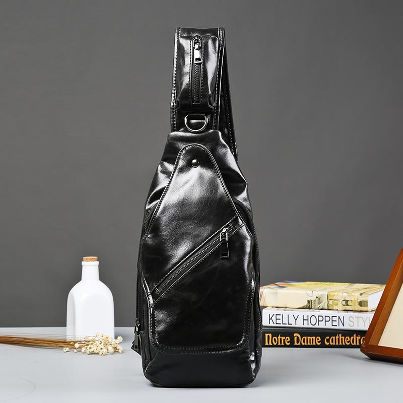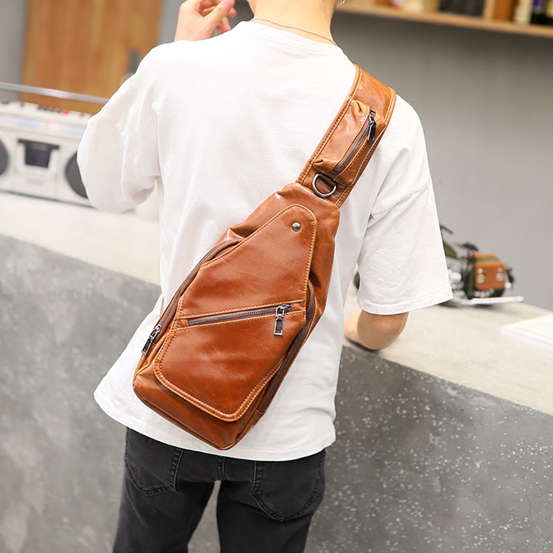 / 新款韓版小胸包男包男士小挎包潮流皮質復古瘋馬皮背包騎行包潮