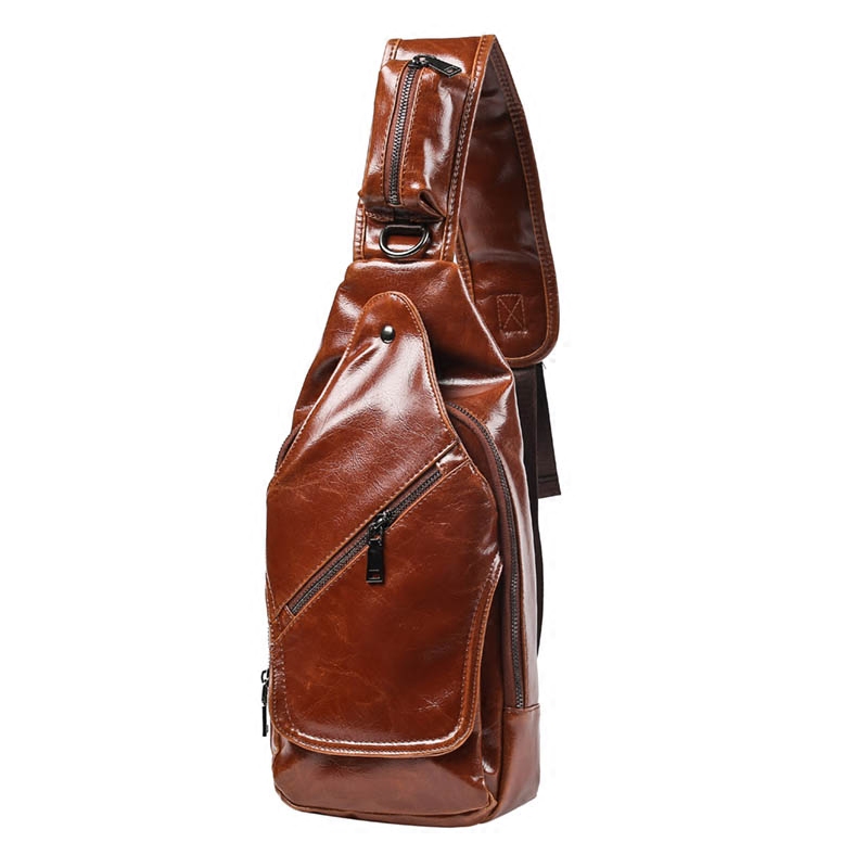新款韓版小胸包男包男士小挎包潮流皮質復古瘋馬皮背包騎行包潮