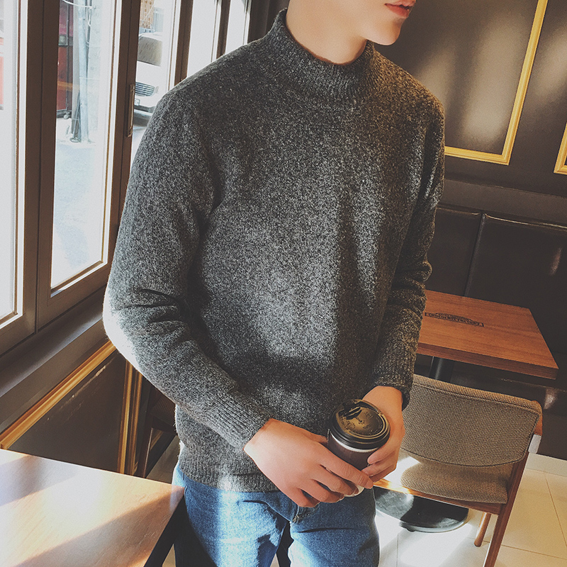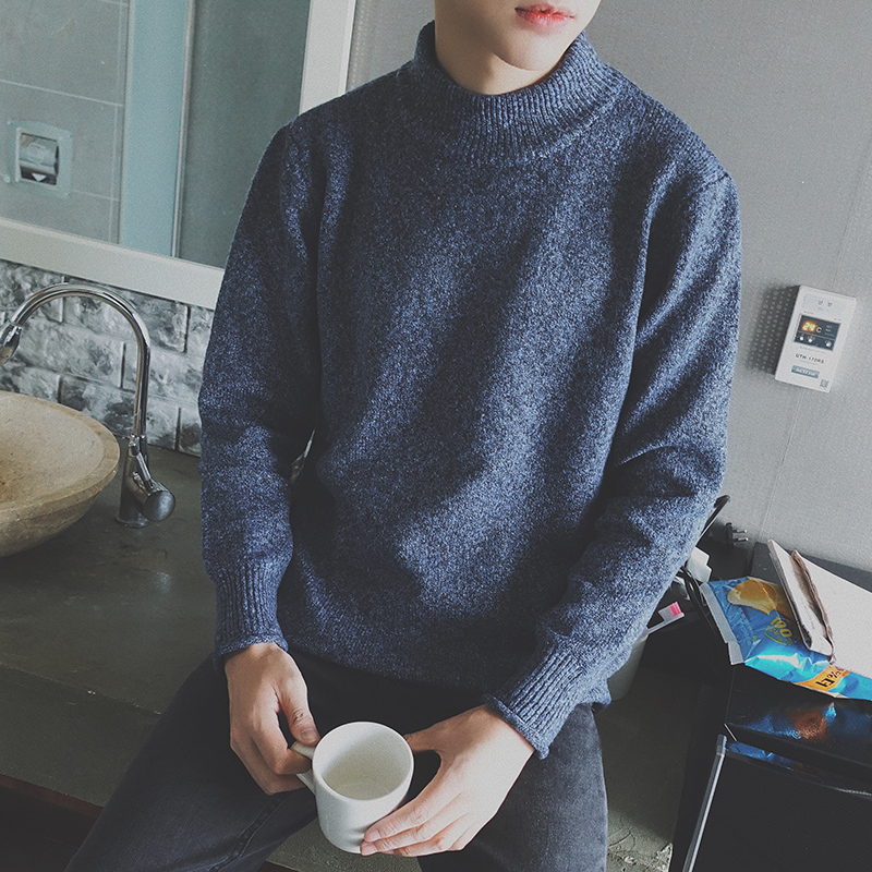 男裝韓版半高領男士加厚修身套頭針織衫毛衣外套