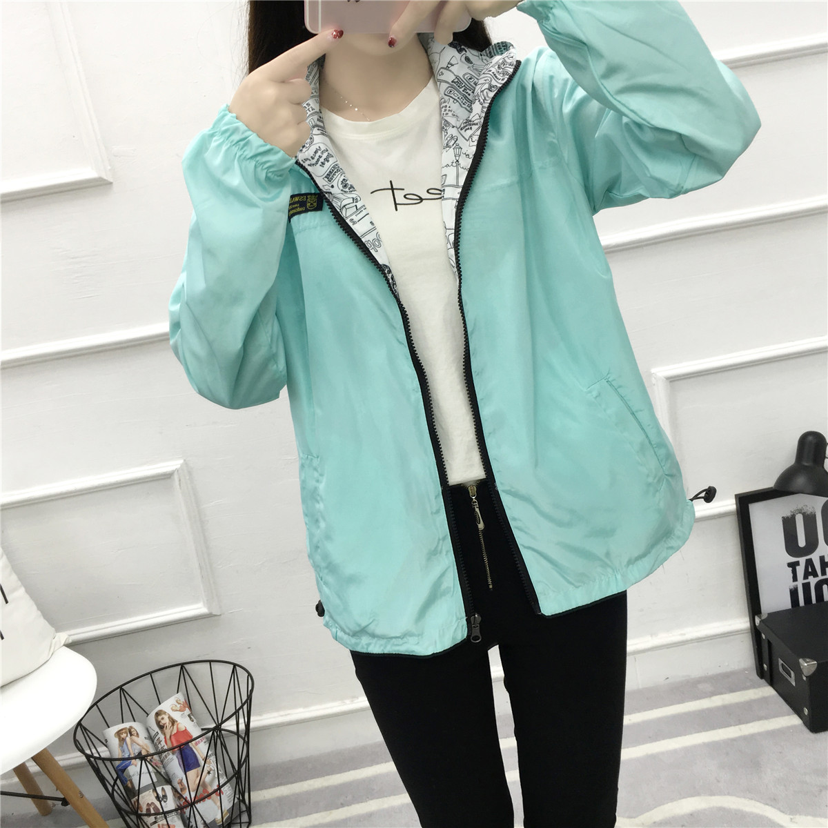 初中女生春裝高中學生百搭兩面穿春秋季短款外套寬松日系少女裝