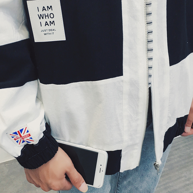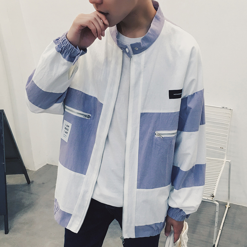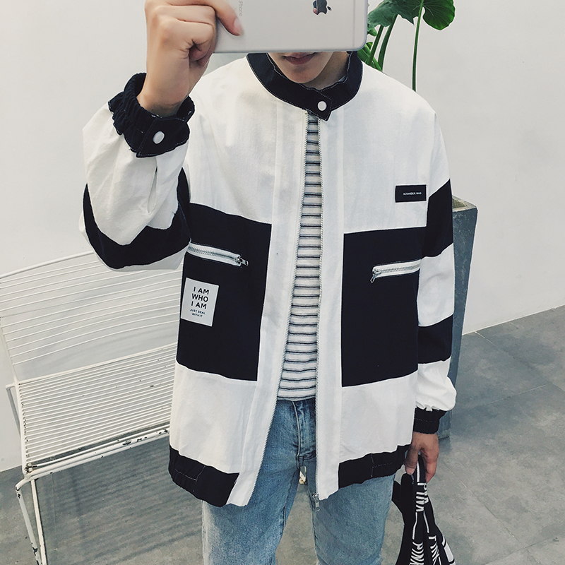 / 新款秋裝韓版男士流行個性拼色短款寬松夾克外套