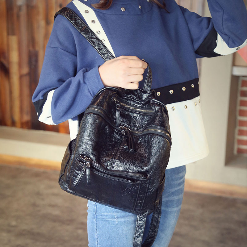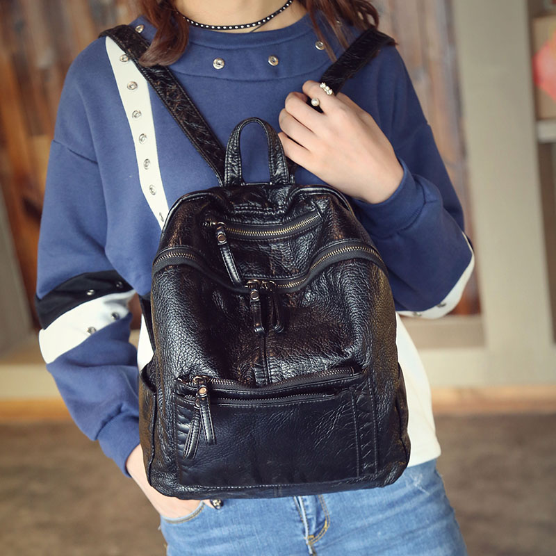 水洗皮雙肩包女韓版新款背包時尚休閑書包學院風包包秋冬潮軟