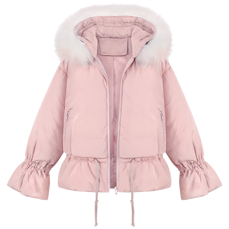 MG小象短款粉色棉衣女新款學生可愛毛領冬季外套矮個子寬松棉服潮