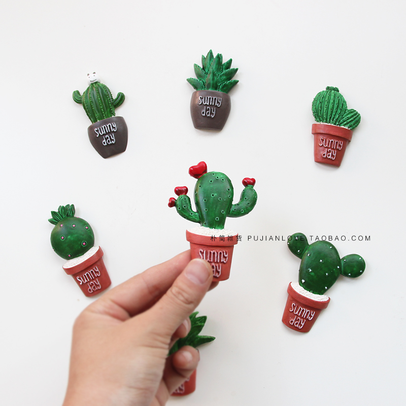 外貿綠色植物樹脂冰箱磁性貼 可愛仙人掌多肉花卉吸鐵石留言貼
