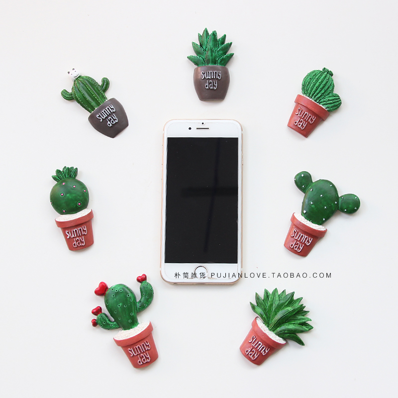 / 外貿綠色植物樹脂冰箱磁性貼 可愛仙人掌多肉花卉吸鐵石留言貼