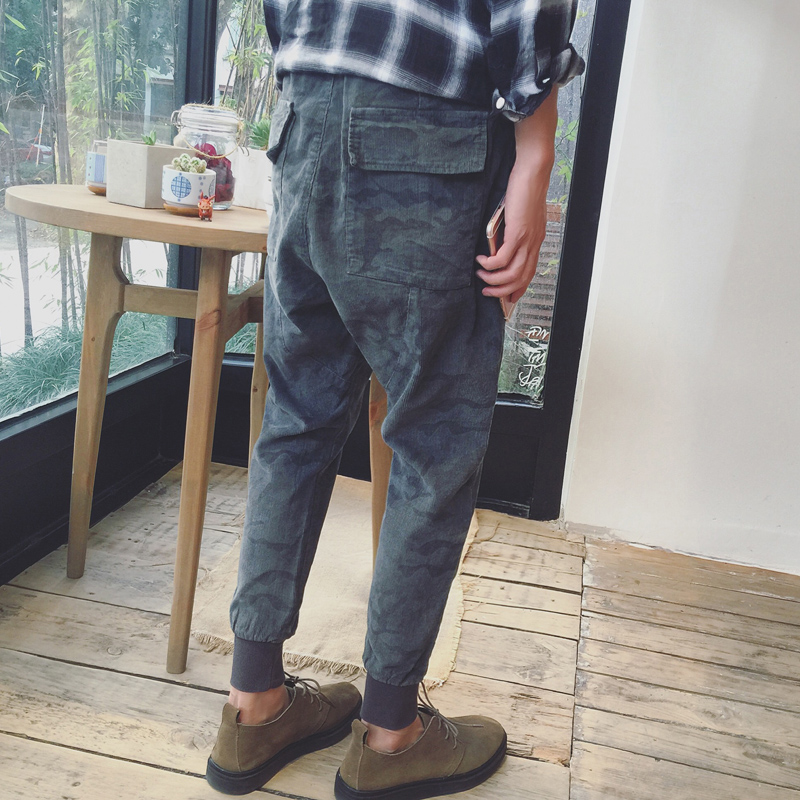 / 新款冬裝港系加厚燈芯絨迷彩小腳休閑褲男士束腳褲