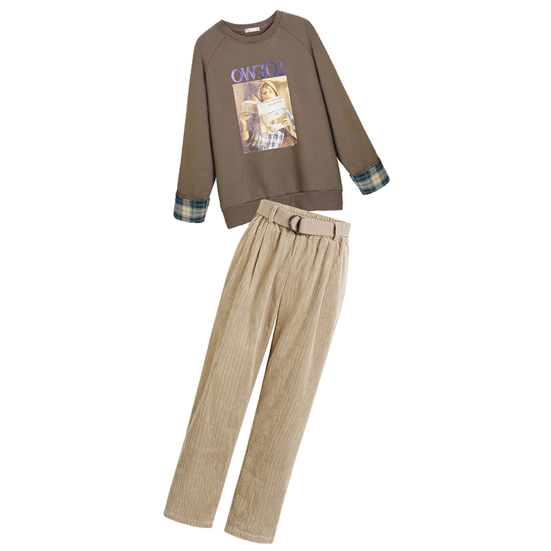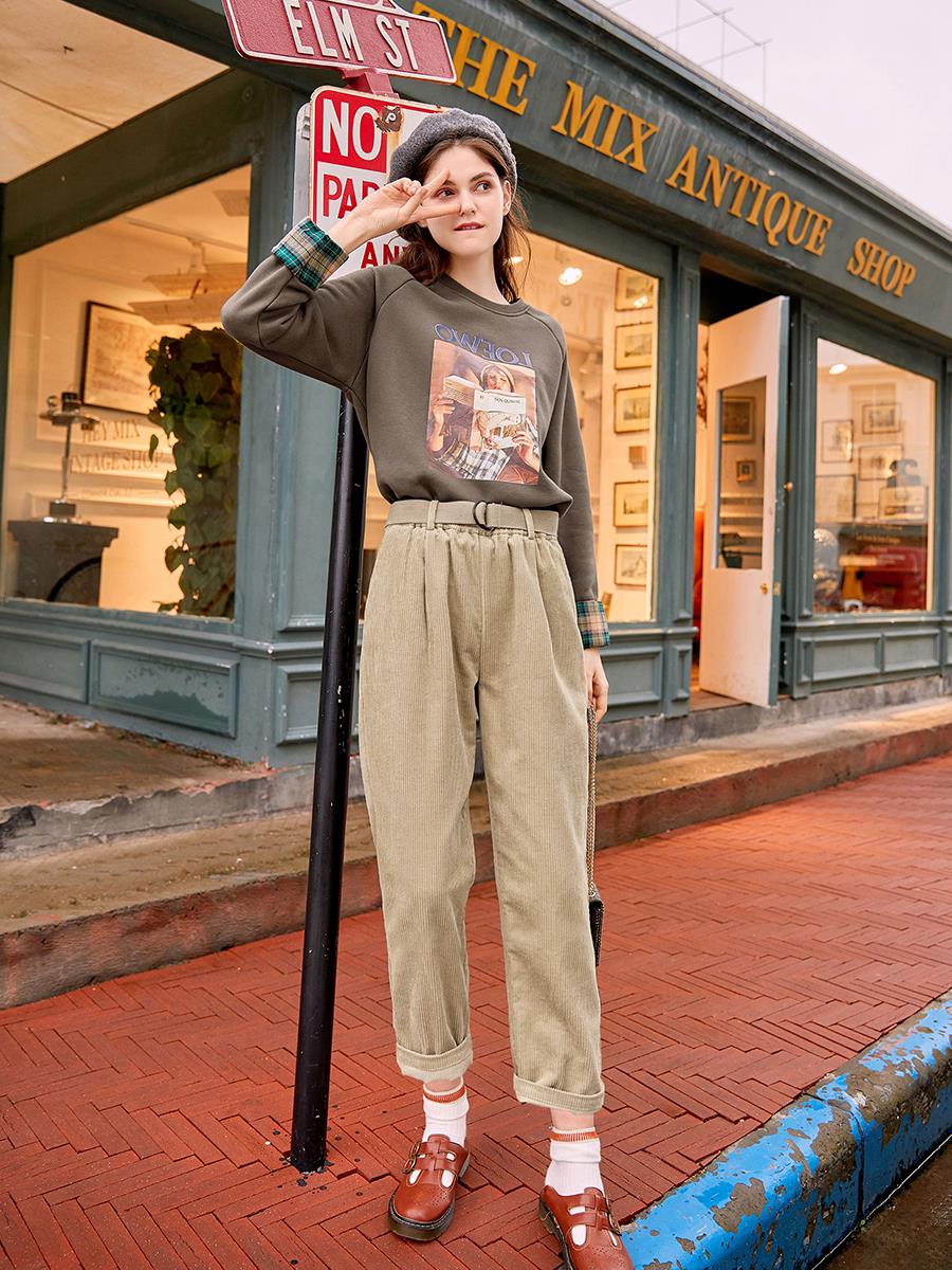 / MG小象圓領套頭衛衣女2018新款寬松高腰休閑褲印花長袖秋冬上衣潮