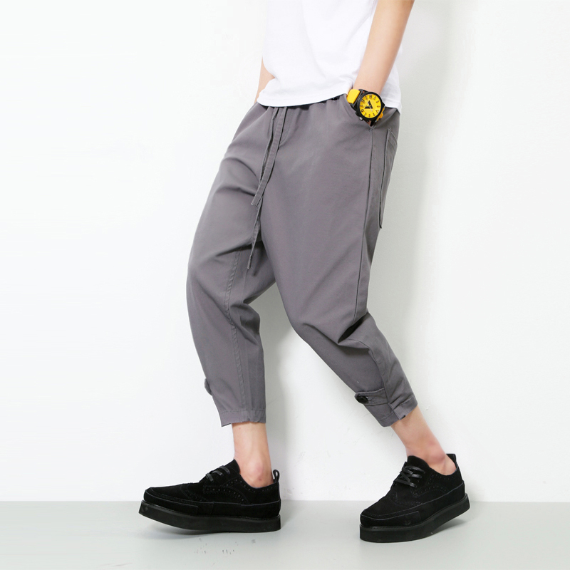 日系復古修身小腳男士哈倫九分褲寬松休閑錐形褲新