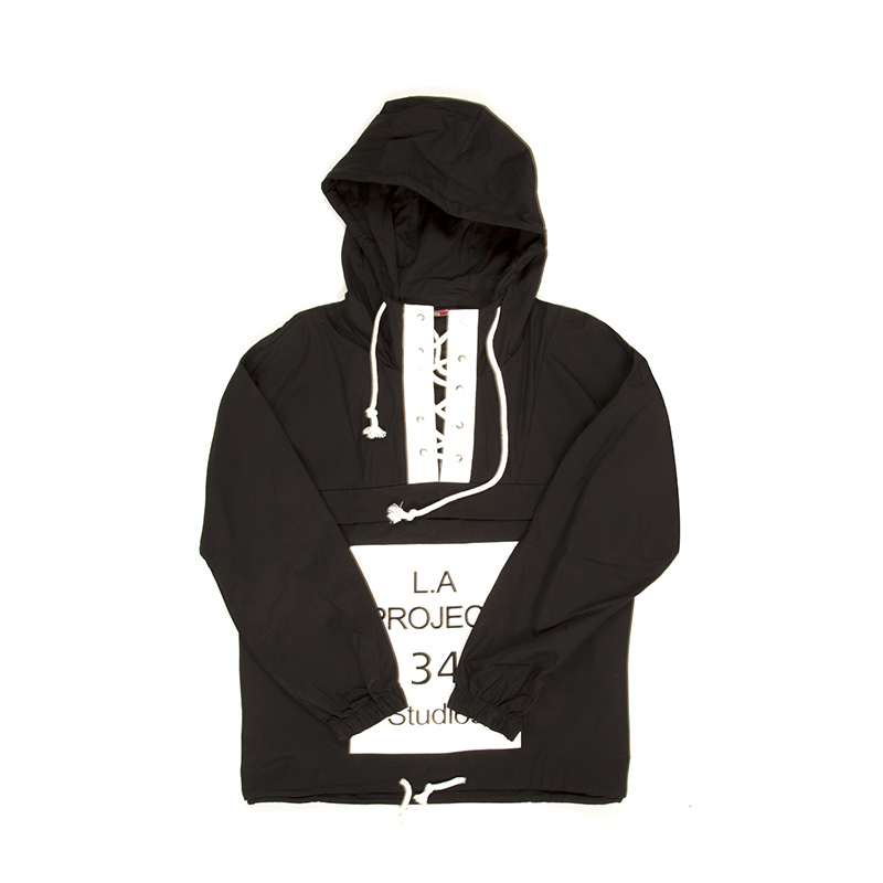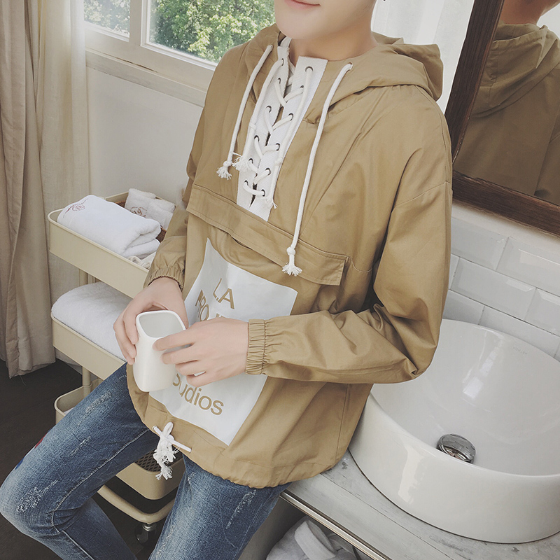 原創領抽繩字母連帽寬松套頭衛衣韓版潮男秋外套新