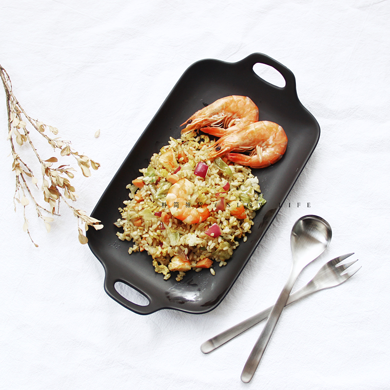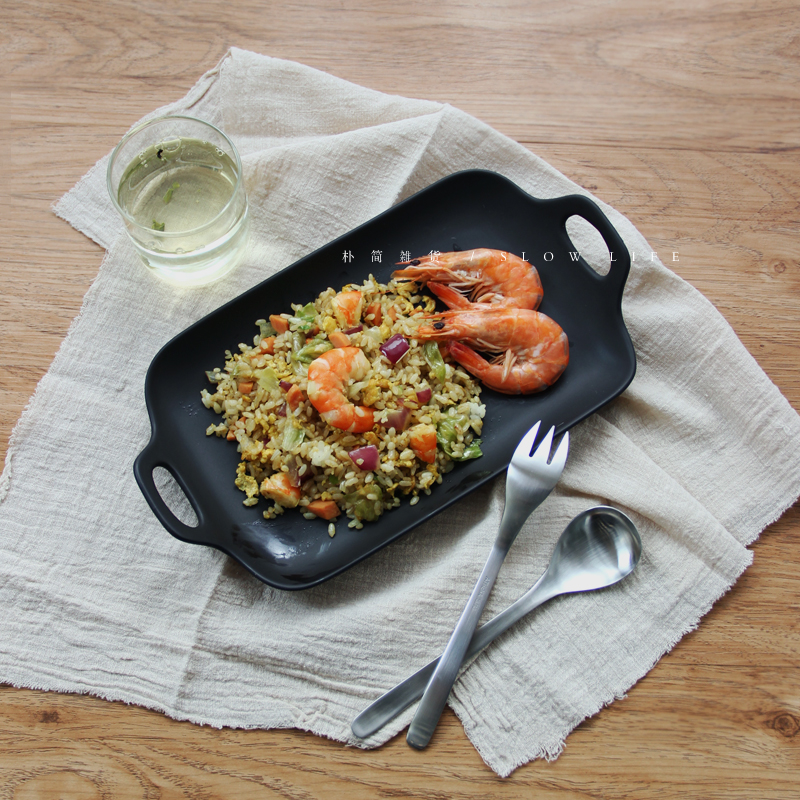 / 樸簡 日式純色啞光雙耳長方陶瓷餐盤西餐牛排盤 餐具盤子菜盤