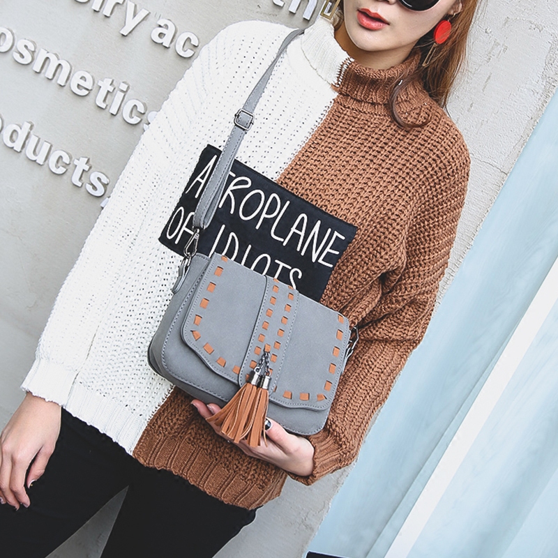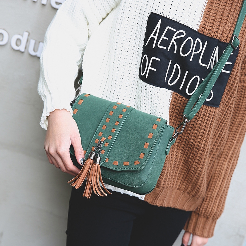 / 包包新款斜挎包女包日韓版流蘇迷你小包撞色復古磨砂單肩包潮
