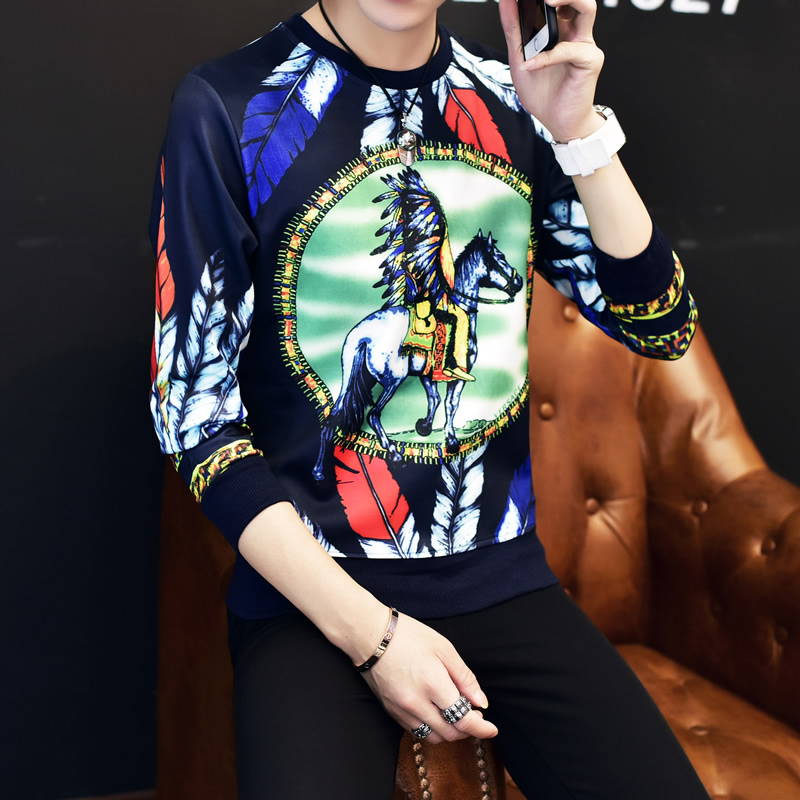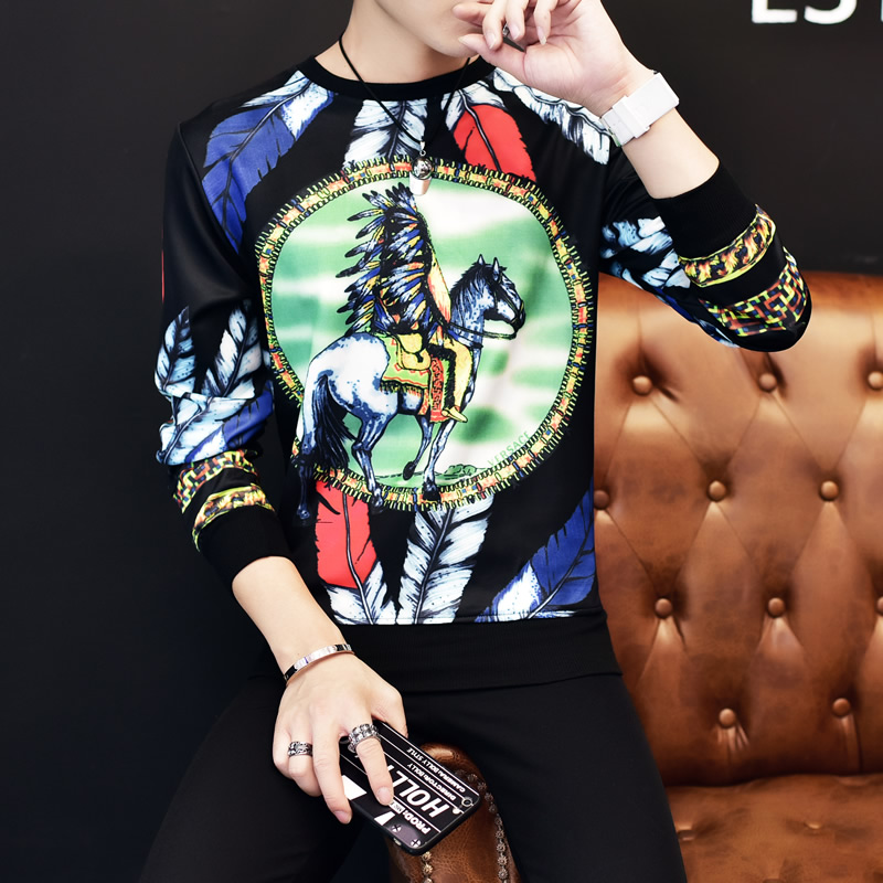 2017男士t恤長袖大碼男T恤韓版潮男帥氣圓領打底衫