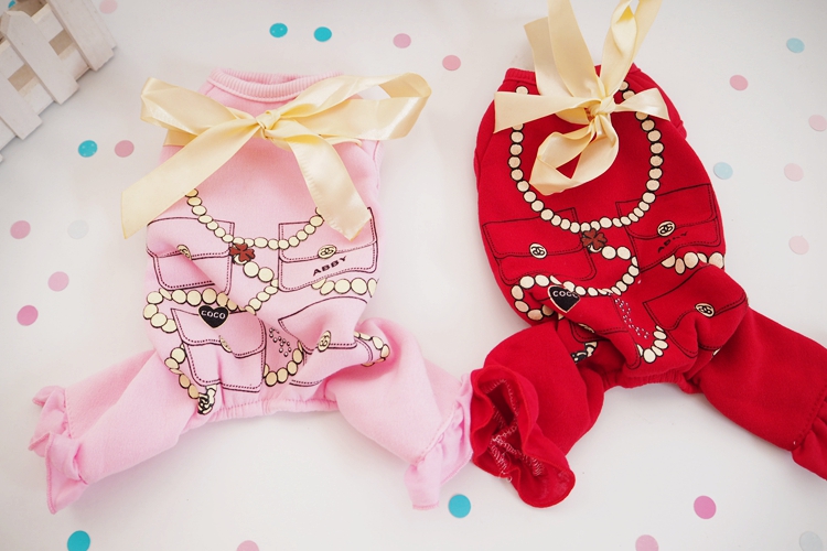 印花珍珠小香風寵物狗狗衣服秋冬款貴賓泰迪犬貓咪服裝