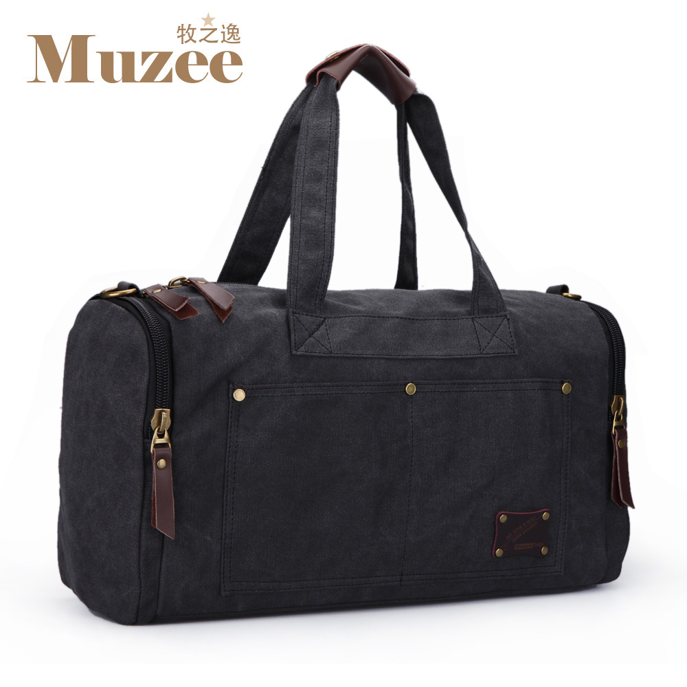 / 男士帆布短途旅行包歐美單肩手提行李袋小型帆布旅游包背包