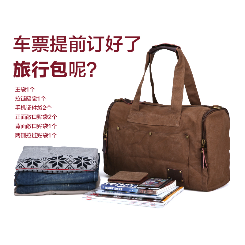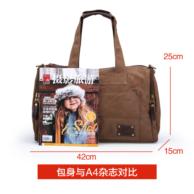 男士帆布短途旅行包歐美單肩手提行李袋小型帆布旅游包背包