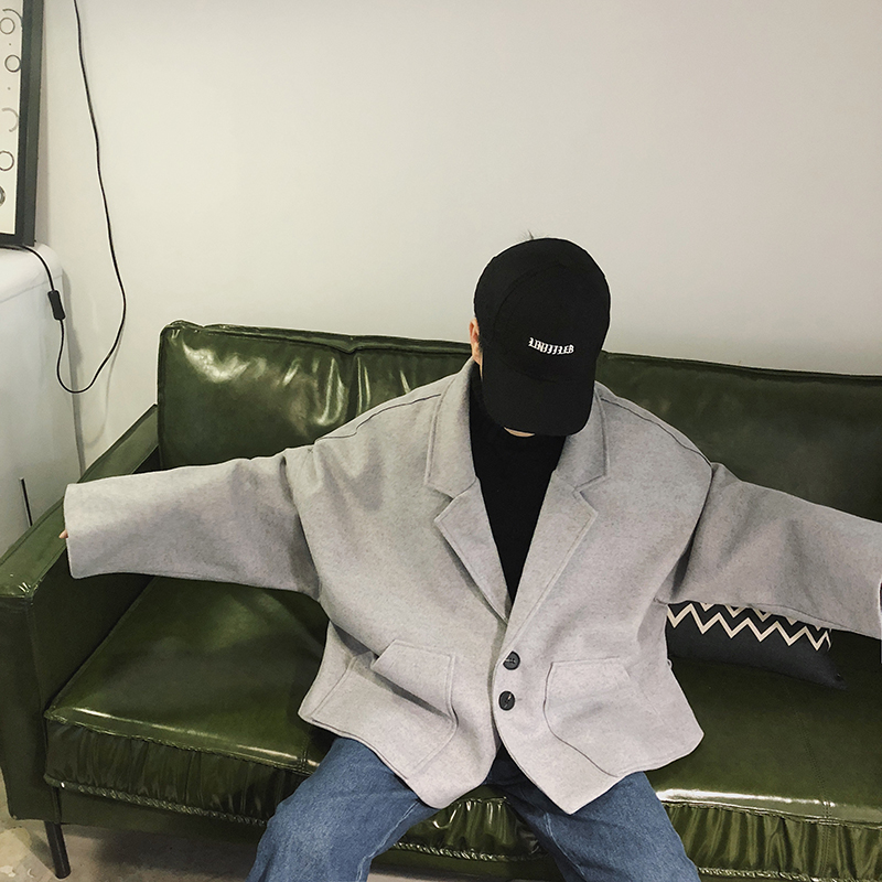 / 文藝男女店短款毛呢大衣男士韓版潮流外套呢子男裝冬季純色情侶裝