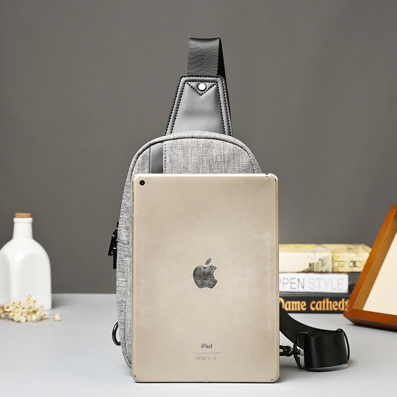 文藝灰色男士胸包韓版潮流包斜挎包休閑牛津帆布男包單肩包后背包