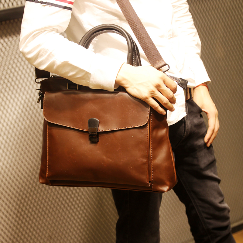 新瘋馬皮復古公文包男士商務出差英倫韓版單肩包斜挎包男包