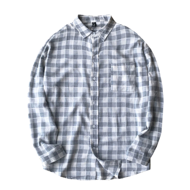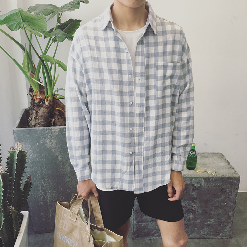 原創文藝清新格子潮男長袖襯衫韓版秋新港風襯衣男