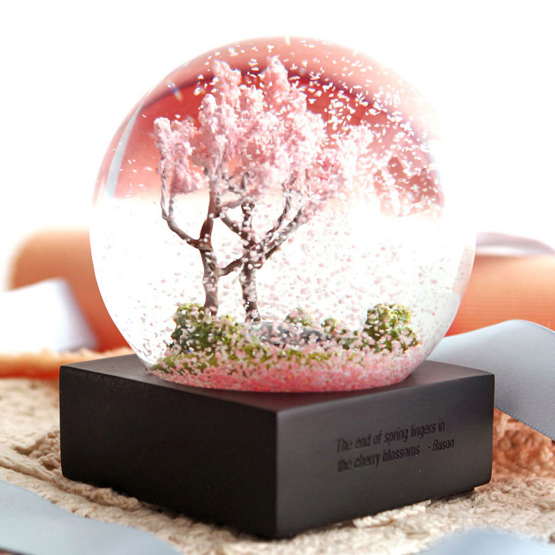 云木雜貨 唯美春季水晶球雪花生日禮物創意擺件情人節禮物櫻花擺