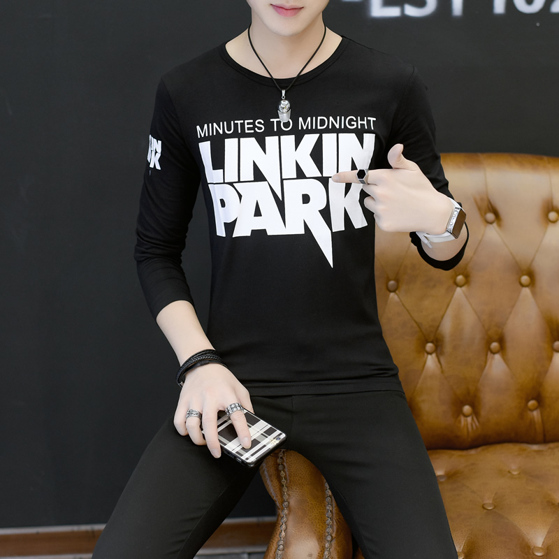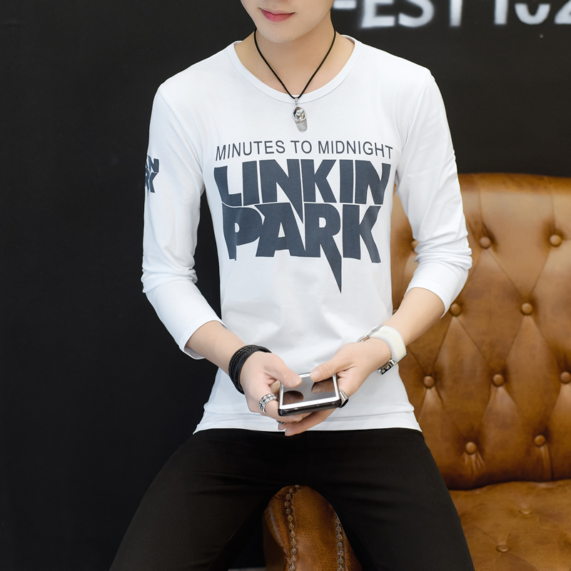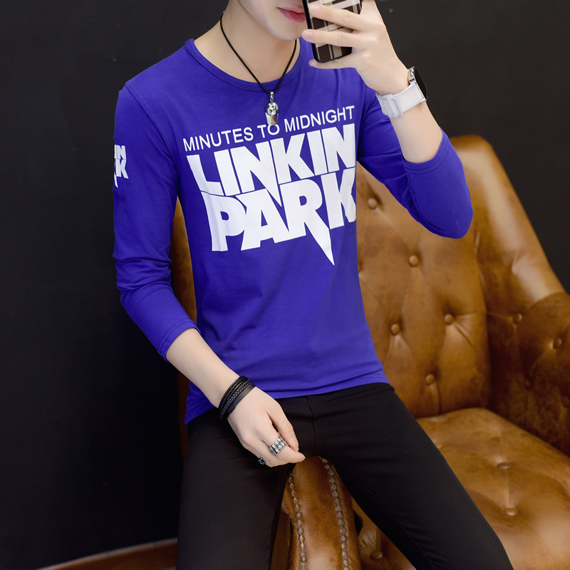 2017新款長袖t恤男士潮流修身秋裝T恤圓領 大碼男