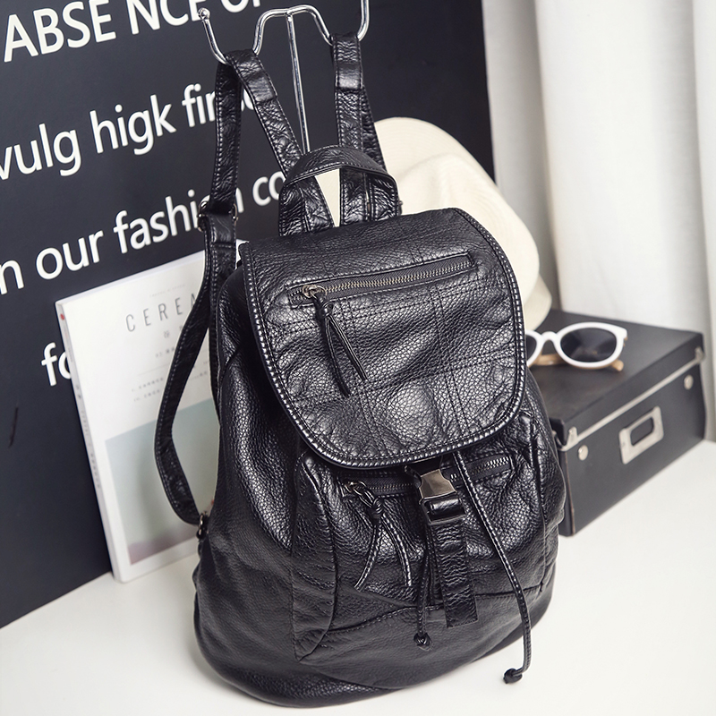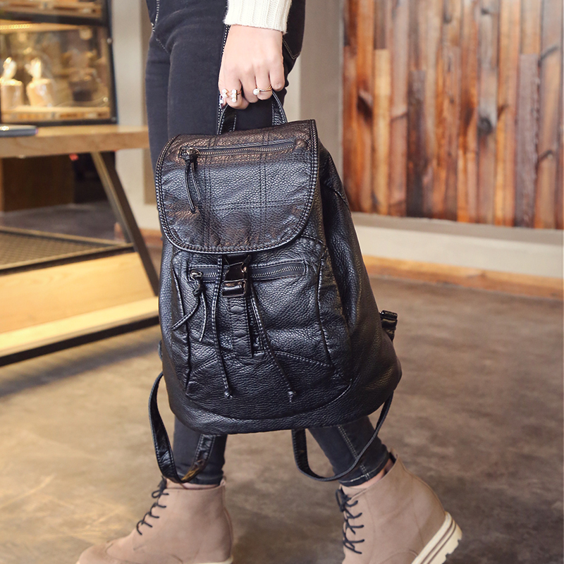 秋冬雙肩包女水洗皮新款背包學院風時尚書包潮流休閑旅行包包