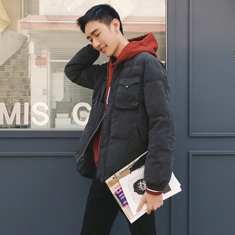 / 男裝雙口袋韓版棒球領棉襖男士加厚短款棉衣外套