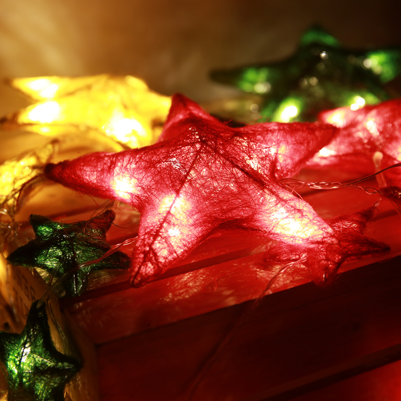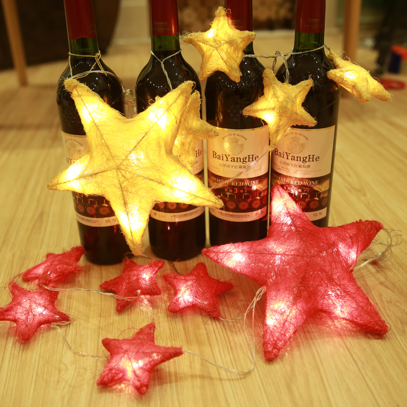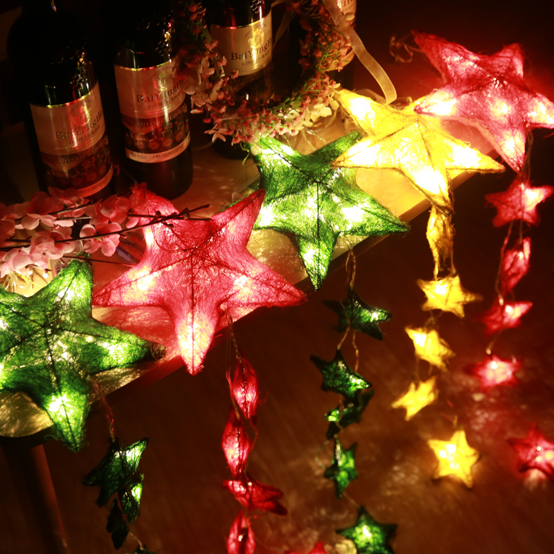 / 圣誕麻絲五角星彩燈閃燈串燈電池燈五角星星圣誕節日臥室裝飾串燈