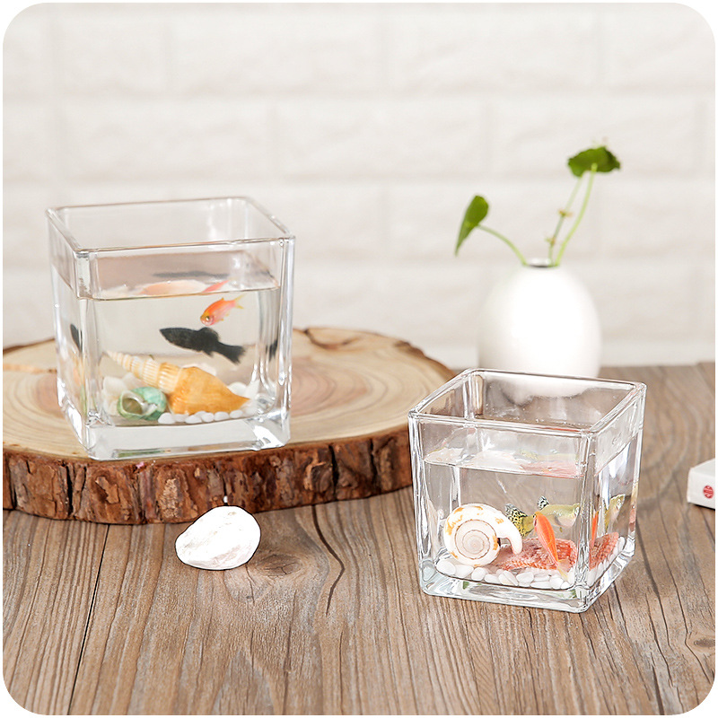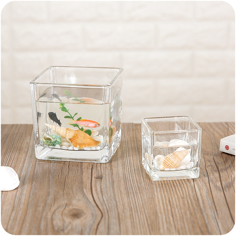 簡約歐式玻璃透明正方形小魚缸花瓶桌面擺件水培花器水養植物花盆