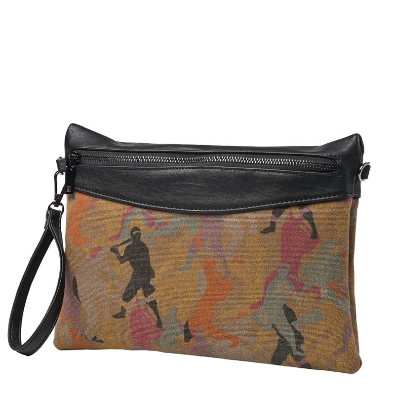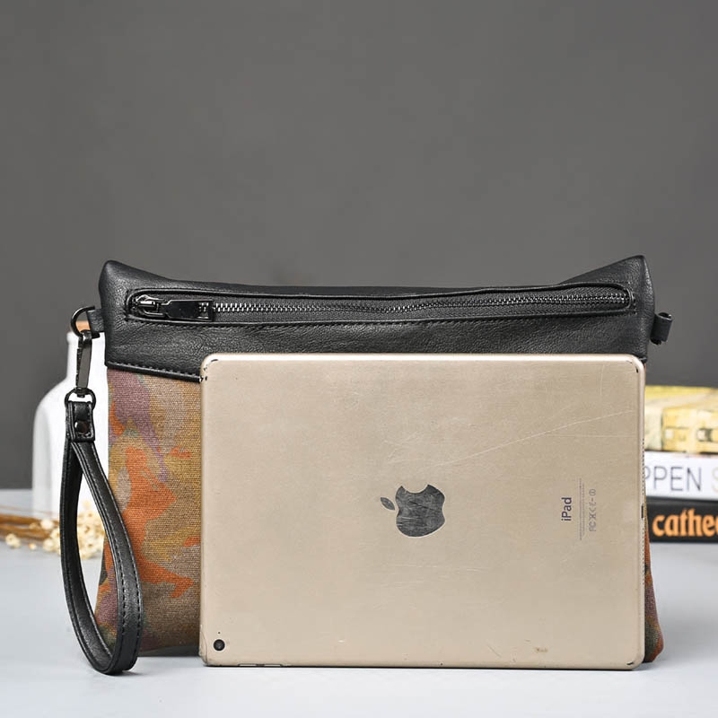 日系新款男士手拿包復古迷彩人帆布配皮手包韓版男包單肩斜跨包